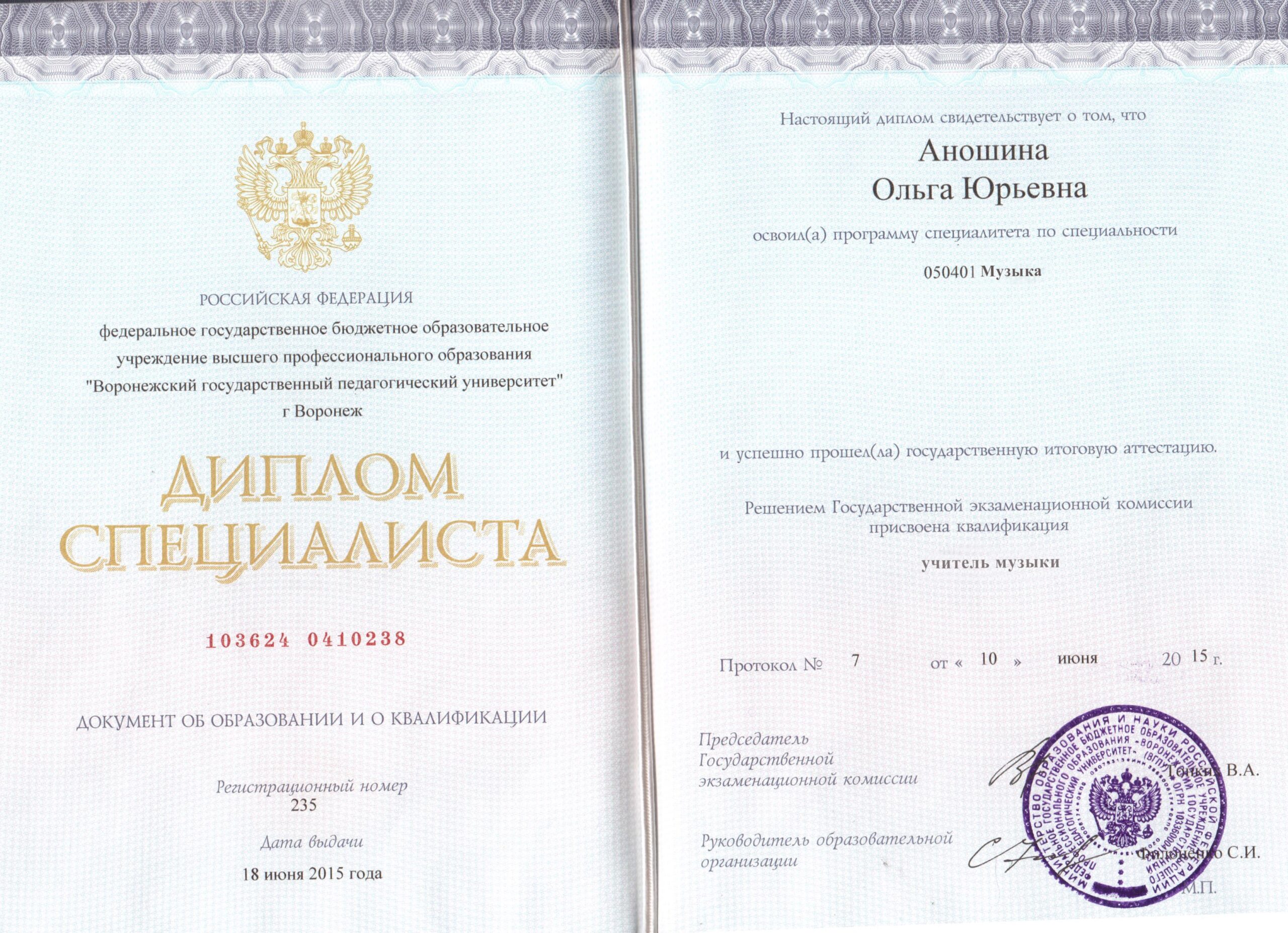 У меня высшее музыкально-педагогическое образование. Опыт преподавания с 2005г (опыт работы 20 лет).